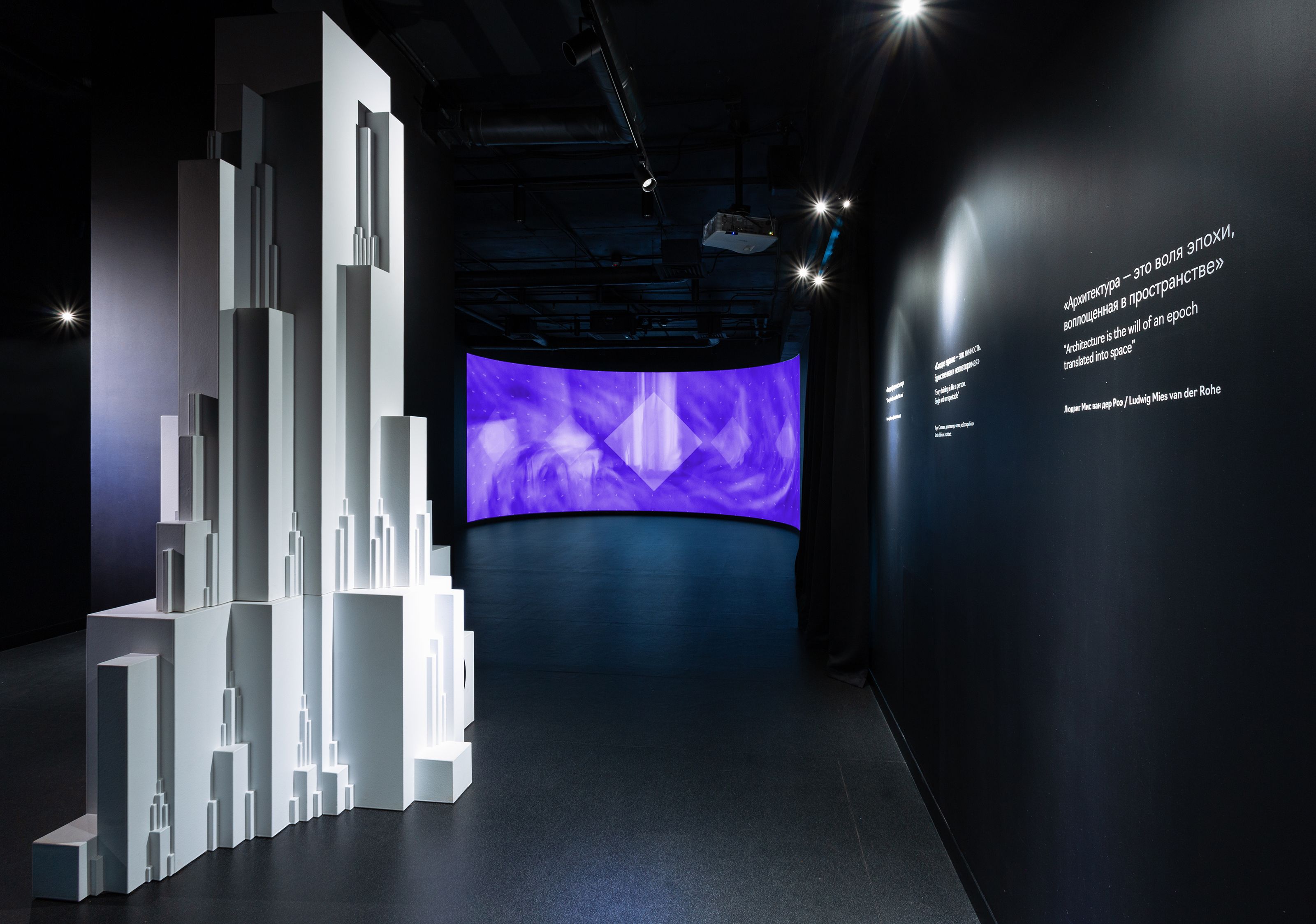 Часть экспозиции, посвящена истории создания Москва-Сити и знакомит с 18 небоскребами комплекса — именами, историей создания, архитектурными и техническими особенностям. Кем был придуман Сити, как он строился, какие башни будут построены, а какие останутся на бумаге. После посещения музея у Москва-Сити от вас не останется никаких тайн.