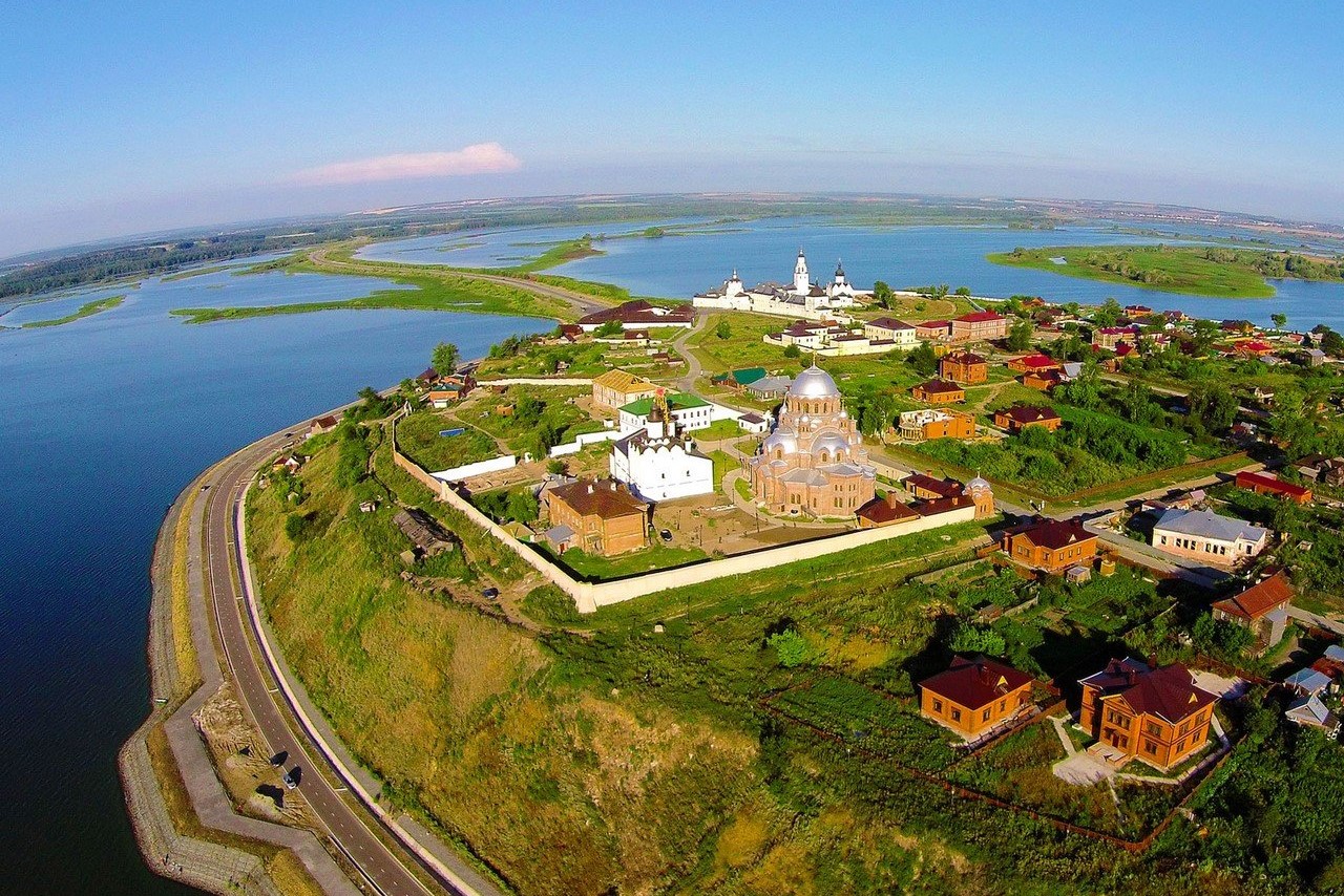 Остров–град Свияжск на "Круглой горе", которую облюбовал Иван Грозный зимой 1550 г. и весной в 1551 г. выстроил здесь город, ставший центром православия Поволжья, сохранил уникальные памятники истории и архитектуры. В окружении природного ландшафта Свияжск являет собой уникальный образец единения природы и общества. Не было в России уголка, где бы на 1 кв. км. приходилось бы столько церквей и монастырей.