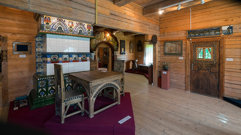 В конце 19 в имение известной меценатки, коллекционера и художницы Марии Клавдиевы Тенишевой стало культурно- художественным центром, где создавали свои шедевры И. Е. Репин, М. А. Врубель, К. А. Коровин, С. Малютин, А.Н. Бенуа и др. Сейчас все гости княжеского имения могут посетить «Теремок», возведенному по проекту С.В. Малютина, который своими фантастическими росписями, напоминает домик, сошедший со страниц старых добрых сказок. В «Теремке» можно увидеть изделия талашкинских мастерских, мебель, изготовленную по эскизам С.В.Малютина, акварели М.А.Врубеля, керамику Н.К.Рериха и расписные балалайки, произведшие фурор на Всемирной выставке 1907 года в Париже. А еще здесь была расписана первая матрешка. По эскизам Н.К. Рериха была создана смальтовая мозаика «Спас Нерукотворный» над порталом церкви Святого Духа. На хуторе сохранилось здание бывшей сельскохозяйственной школы, которую также посещают гости, восстановлен класс, где учили крестьянских детей и представлены предметы народно-прикладного искусства.