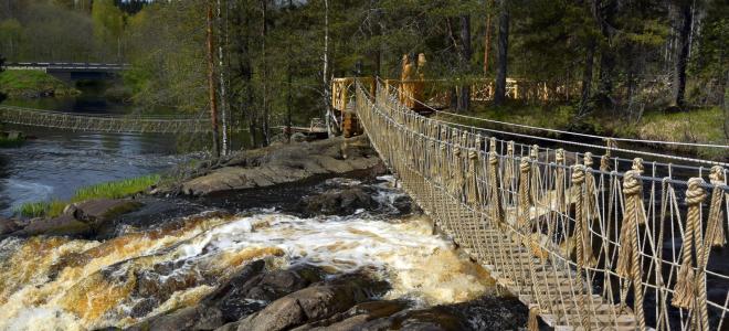 Вы не пожалеете, если пройдете по экологическому маршруту «Аллея сказок», глядя сверху вниз на бурлящие воды с высоты протянутых над ними подвесных верёвочных мостов. Среди деревьев прячутся фигурки персонажей карельских мифов, легенд и знаменитого эпоса «Калевала». Так что при желании за доплату вы сможете пройтись над водой в поисках красивых кадров на свой фотоаппарат.