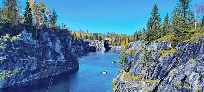 «Подземная Рускеала» - новый экскурсионный маршрут по штольням и пещерам в глубинах мраморной горы пользуется особым спросом. Красочные блики сплетаются с мраморными узорами, под каменным сводом раздается чарующее эхо карельских песнопений - эта прогулка станет поистине фантастическим переживанием.