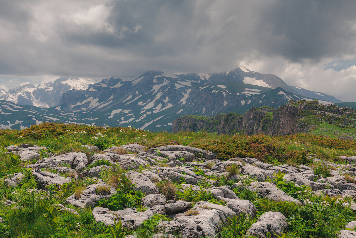 Собираем рюкзаки и отправляемся в путь. По широкой тропе мы поднимаемся в зону альпийских лугов и продолжаем наш путь все дальше и дальше углубляясь в загадочный мир плато Лаго-Наки. Со всех сторон нас окружают каменистые пики и выступы. Это хребет Каменное море приветствует туристов. Он отделяет мир старика Фишта от высокогорного плато Лаго-Наки.