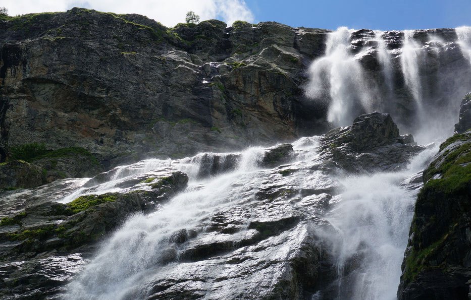 В теплое время года ледник тает, и образуются великолепные Софийские водопады. Высота водопадов - 70 метров! С невероятным шумом огромная масса воды падает вниз, на темные скалы и дает начало белой, пенящейся реке София.