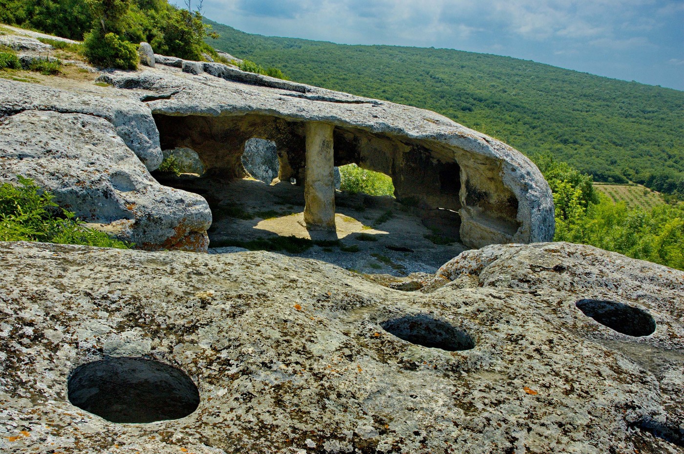 Маршрут: Восхождение в пещерный город Тепе-Кермен, высоко возвышающийся над прекрасной Качинской долиной, с более чем 250 пещерами и супер-видами на десятки км вокруг, пещерный монастырь Феодора Стратилата в Челтер Коба , Сюйреньская крепость, Дырявый грот и лучшая смотровая площадка Бельбекской долины - Мыс Утюг.