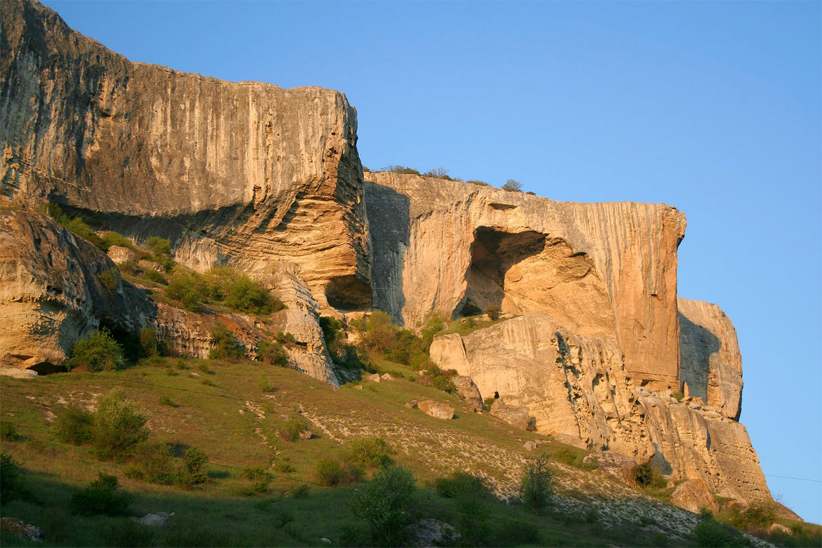 14:00-16:00 Переезд к подножию Пещерного города Эски-Кермен (входной билет за доп. палту: 200 р. взрослый, 100 р. пенсионный, школьный). Восхождение с гидом на вершину. Экскурсия по пещерному городу.