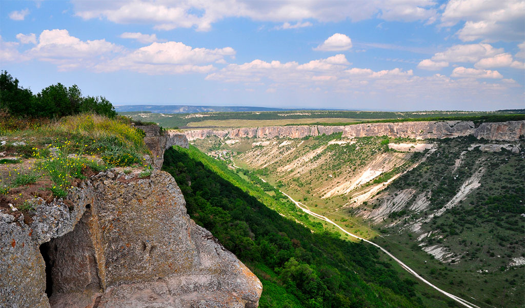 9:00-12:00 Встреча с гидом-водителем, переезд на вершину самого большого пещерного города Крыма, бывшую столицу средневекового княжества Феодора – Мангуп-Кале(входной билет за доп. палту: 200 р. взрослый, 100 р. пенсионный, школьный). Головокружительные обрывы, бескрайние долины, аромат сосны и разнотравия. Прогулка по вершине с гидом.