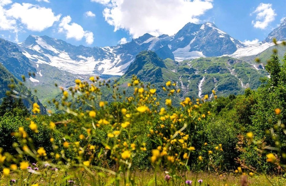 На сей раз тур предполагает максимальное сближение: в отличие от Караугома, мы подберемся к древнему леднику почти вплотную и даже устроим чаепитие в окружении умопомрачительных видов! Тана-цете расположен между двумя дигорскими вершинами – Лабодой и Таймази. Летом, особенно в конце июня-июле, здешние луга принаряжаются: отовсюду на путников поглядывают незабудки, розовые горцы, оранжевые маки. На фоне пестрой природной клумбы, в обрамлении лесистых гор и снежных вершин, ледник смотрится настолько ирреально и необычно, что от него практически невозможно отвести взгляд. Тур в Дигорию не будет полноценным без посещения этого надменного красавца.