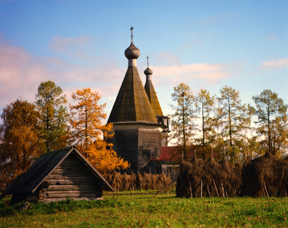 12:00 - Деревенский обед по-ошевенски с домашним хлебом и пирогами из русской печи. После обеда продолжаем наше знакомство с Каргопольем - едем в село Архангело, где на левом берегу реки Онеги стоят две деревянные церкви — Архангела Михаила (1715 г.) и Сретения Господня (около 1820 г.). Первая уникальна тем, что завершена кубоватой кровлей, известной только в Поонежье и на прионежском берегу Белого моря. На кубе стоит традиционное пятиглавие. Апсида перекрыта бочкой. Сретенская церковь имеет шлемовидную кровлю с завершением главкой. Храм Сретения Господня относится к типу ярусных храмов.