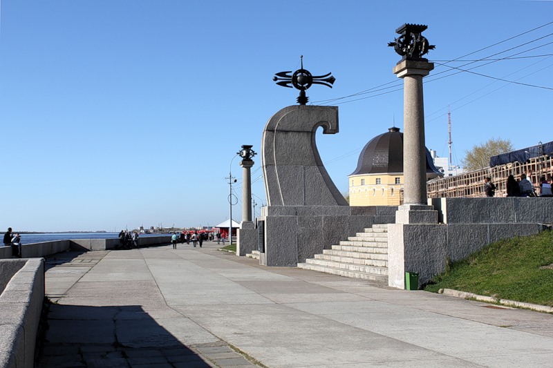 Архангельск носит звание «Город воинской славы», поэтому не случайно на набережной расположены несколько памятников, которые свидетельствуют о ратной доблести северян.