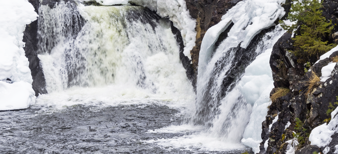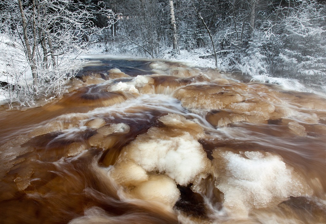 «Братья-падуны», как их называют местные жители, были бы единым целым, если бы не остров посреди реки, который делит течение надвое. В результате образовались два водопада – 18-метровый и 11-метровый. Они такие мощные, что даже суровой зимой не замерзают полностью, а дышат и сопротивляются морозу под ледяным панцирем, пробиваясь наружу.