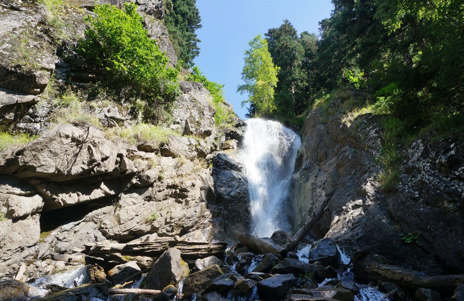 Треккинг к водопадам несложен: набор высоты – постепенный, местность – чудная: вокруг шумит хвойный бор, шепчет о чем-то своем легкомысленный березняк, обдают ароматом пихты. Ближе к водопадам пейзаж меняется на более каменистый – летом попадаются даже остатки снежника. Обернитесь – внизу, как на ладони видна Софийская долина!