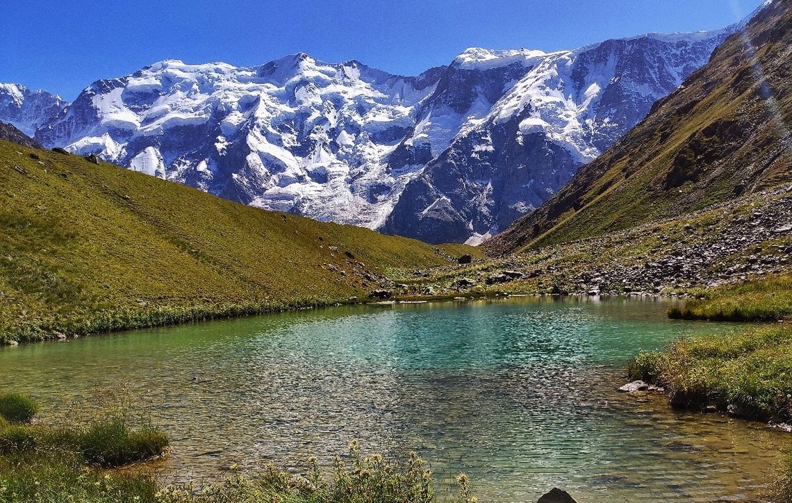 С каждым шагом будем подходить все ближе и ближе к великолепной, белоснежной Безенгийской стене. Стена представляет собой 13 километров из снега и льда, здесь находятся два пятитысячника: Джангитау (5085 м) и Шхара (5193 м). По пути полюбуемся на великолепную гору Гестола, которая упирается в небо своей острой, белоснежной вершиной.