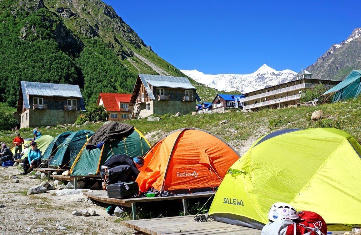 - Проживание в личной палатке на платной стоянке на территории альплагеря «Безенги».