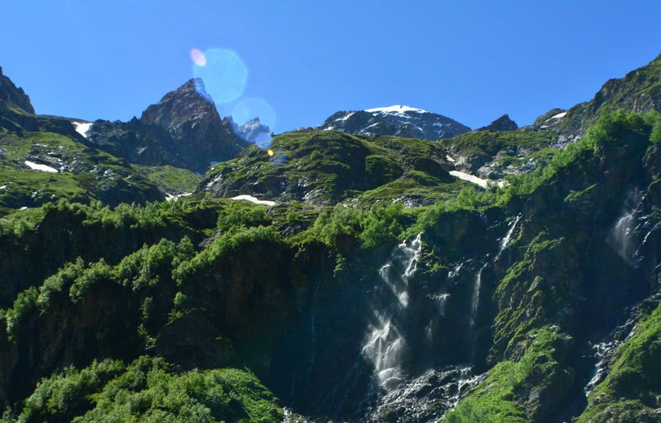 В тёплое время года ледник тает, и образуются великолепные Софийские водопады. Высота водопадов – 70 метров! С невероятным шумом огромная масса воды падает вниз, на темные скалы и дает начало белой, пенящейся реке София.