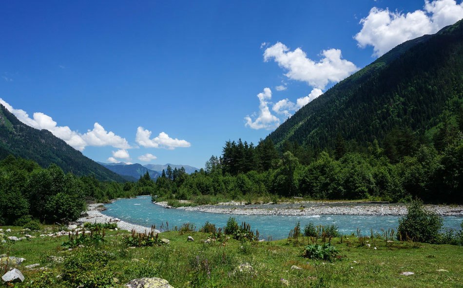 Тур по Архызу продолжаем прогулкой к трем высокогорным Дуккинским озерам. Путь лежит вдоль реки Малая Дукка, которая делает множество витиеватых поворотов и извивается по долине, показывая туристам свой игривый нрав.