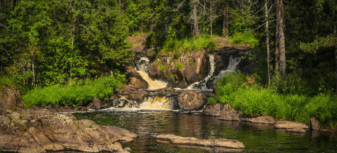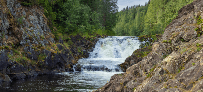 Край тысячи озер и рек известен также своими невысокими, но стремительными водопадами. Среди них заслуживают отдельного внимания каскады бурной лесной реки Тохмайоки, также именуемые Рускеальскими водопадами, которые не замерзают даже в самое холодное время года! Пейзажная идиллия этой местности привлекала кинорежиссеров и была запечатлена в сценах военной драмы «А зори здесь тихие…» и фэнтези «Темный мир».