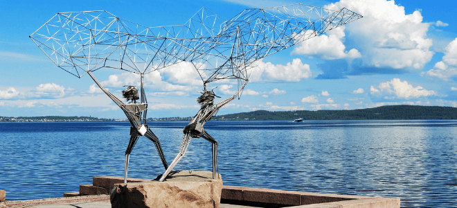 Онежская набережная – визитная карточка города! На ней раскинулся своеобразный музей под открытым небом, экспонаты которого – оригинальные арт-объекты, подаренные столице Карелии городами-побратимами.