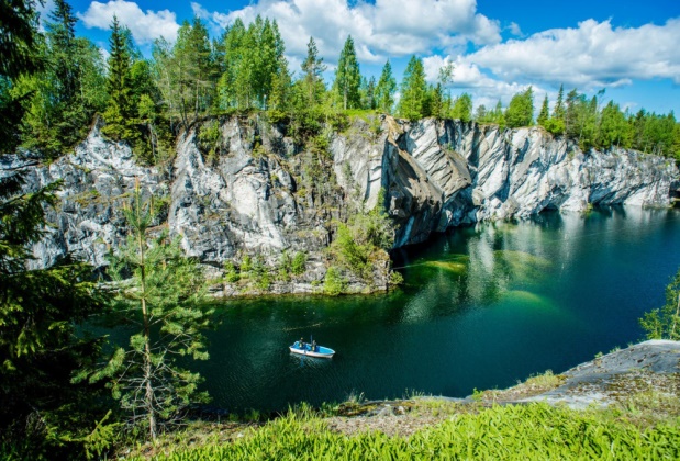 Горный парк «Рускеала» – одна из главных достопримечательностей Карелии, поражающая своей красотой в любое время года. Представьте огромный парк с причудливым рельефом, вечнозелеными лесами, тропинками и необычными локациями, а в самом сердце его визитная карточка – Мраморный каньон. Это большое, вытянутое озеро с отвесными берегами из настоящего мрамора, которые отражаются в кристально чистой воде.