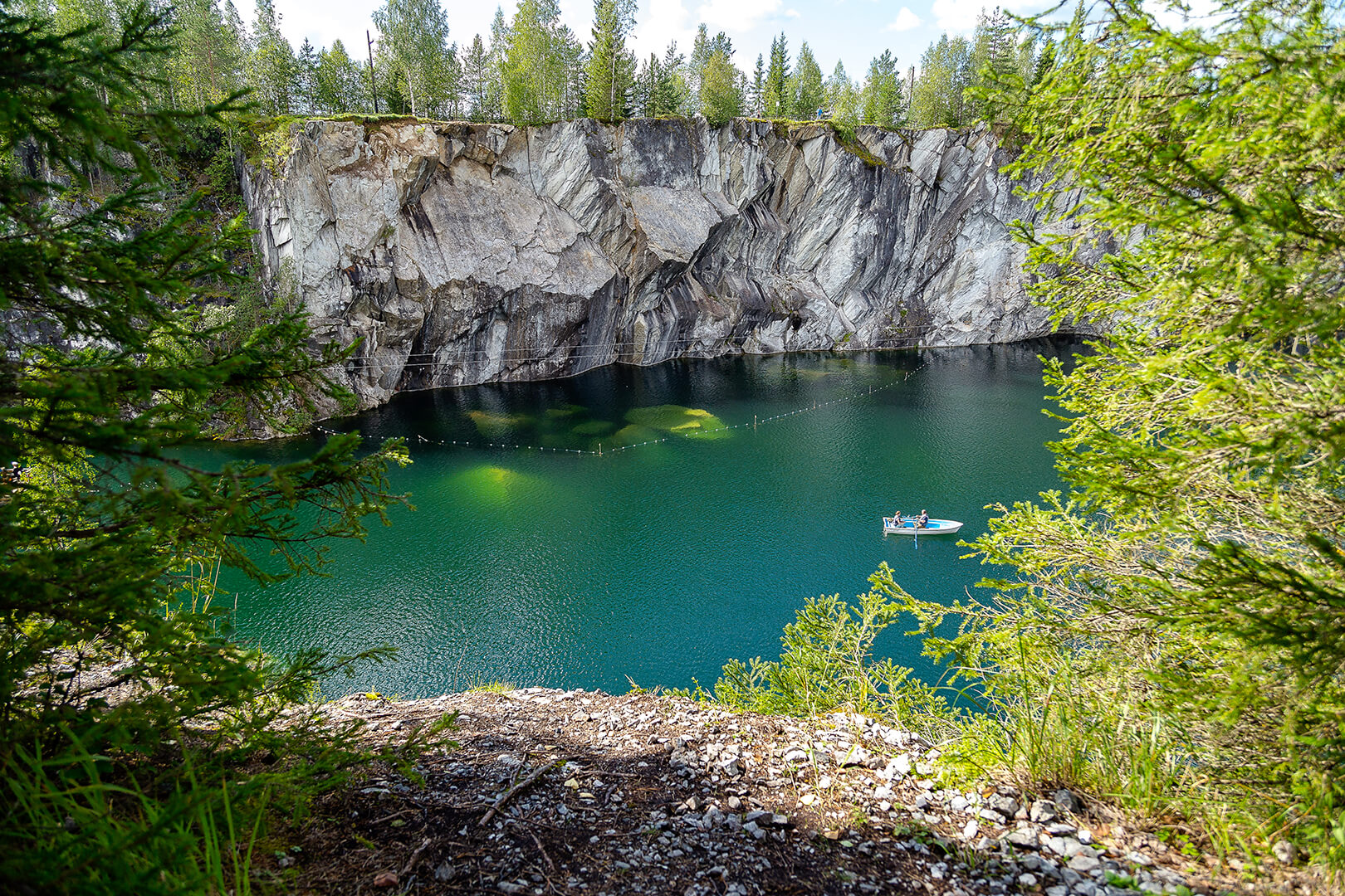 Горный парк «Рускеала» – одна из главных достопримечательностей Карелии, поражающая своей красотой в любое время года. Представьте огромный парк с причудливым рельефом, вечнозелеными лесами, тропинками и необычными локациями, а в самом сердце его визитная карточка – Мраморный каньон. Это большое, вытянутое озеро с отвесными берегами из настоящего мрамора, которые отражаются в кристально чистой воде.