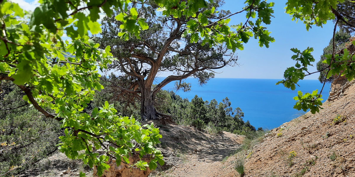 Пройдем всего около часа от гостиницы – и перед нами откроются совершенно новые пейзажи. Поднявшись на мыс Балаклавский, увидим выход в открытое море, далекий мыс Айя и урочище Инжир. В мае вершину мыса украшает цветущая, фиолетовая сирень.