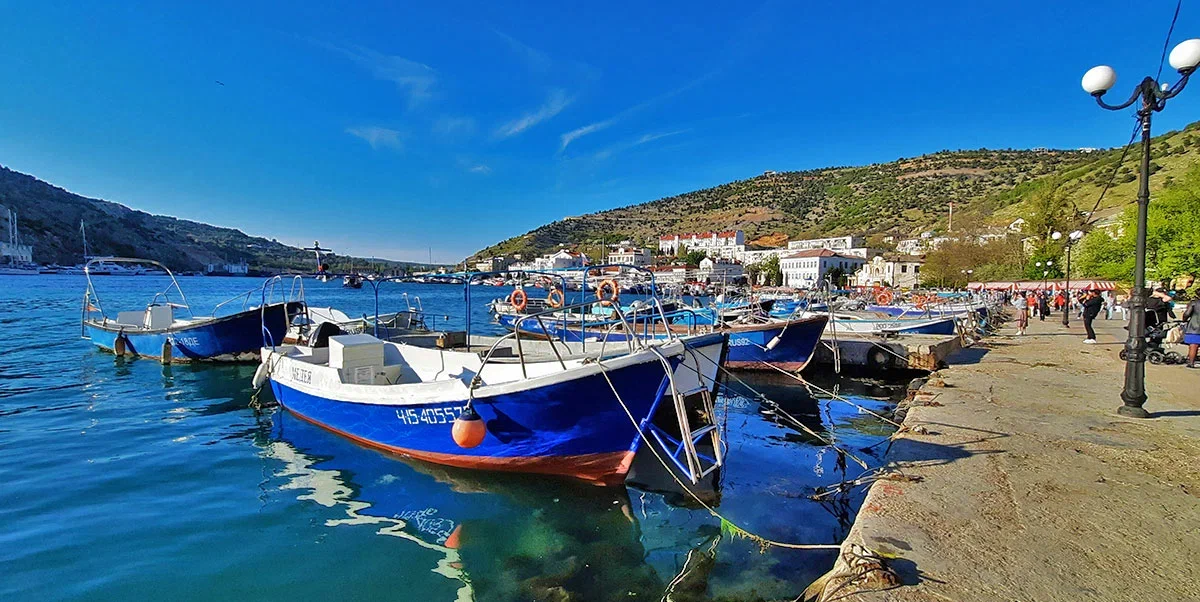 Не теряя времени, сразу едем в приморский городок Балаклава и поселяемся в гостинице. Затем отправляемся на набережную, где стоят летние прогулочные катера, лодки и роскошные, белоснежные яхты.