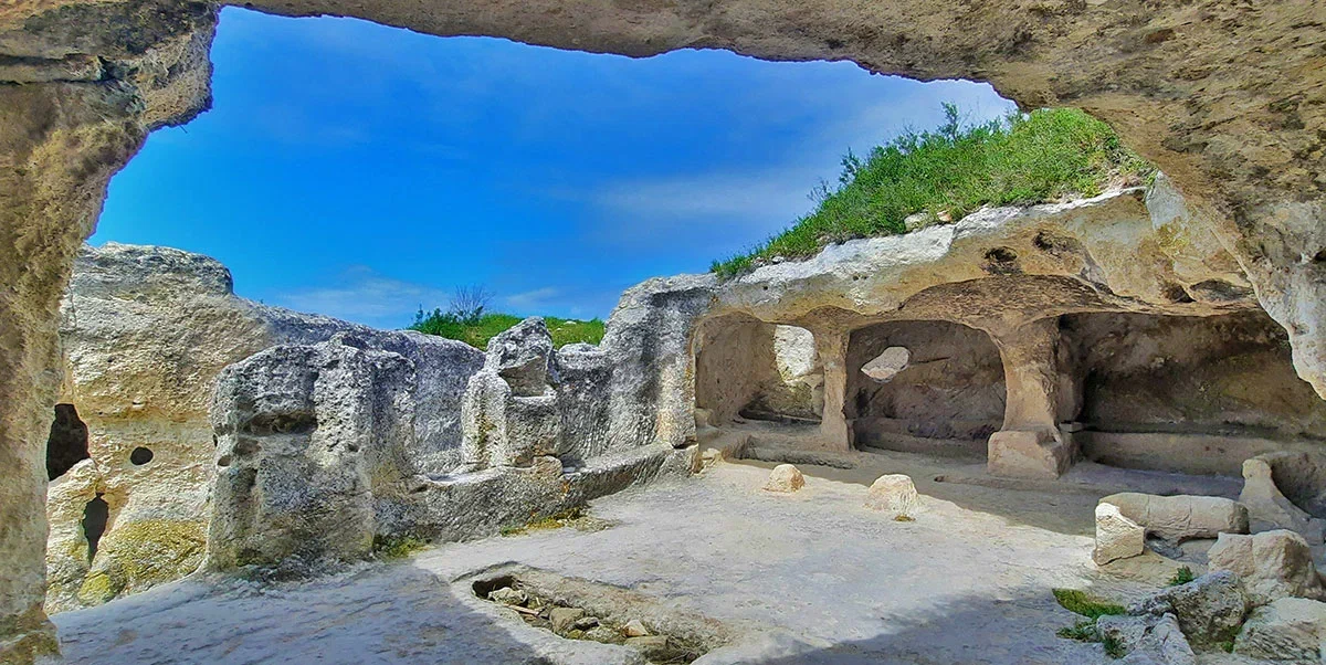 Далее направимся в Эски-Кермен – один из самых романтичных пещерных городов. Здесь множество пещер с видовыми окнами очень интересной формы, глубокий колодец и даже пещерный храм с цветными фресками.