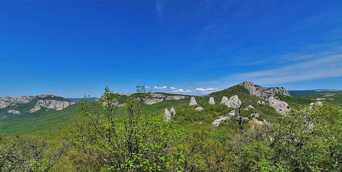 Над верхушками леса возвышаются, как будто лепестки, семь камней, которые называют «сахарными головками», и один камень в центре – центральный алтарный камень. Это легендарное место в Крыму – Храм Солнца, которое обладает таинственной энергетикой. Здесь остановимся, зарядимся энергией и пообедаем. Летние туры побалует нас сочными персиками, грушами, виноградом. Поэтому обеды в горах – это почти гастрономические туры по Крыму!
