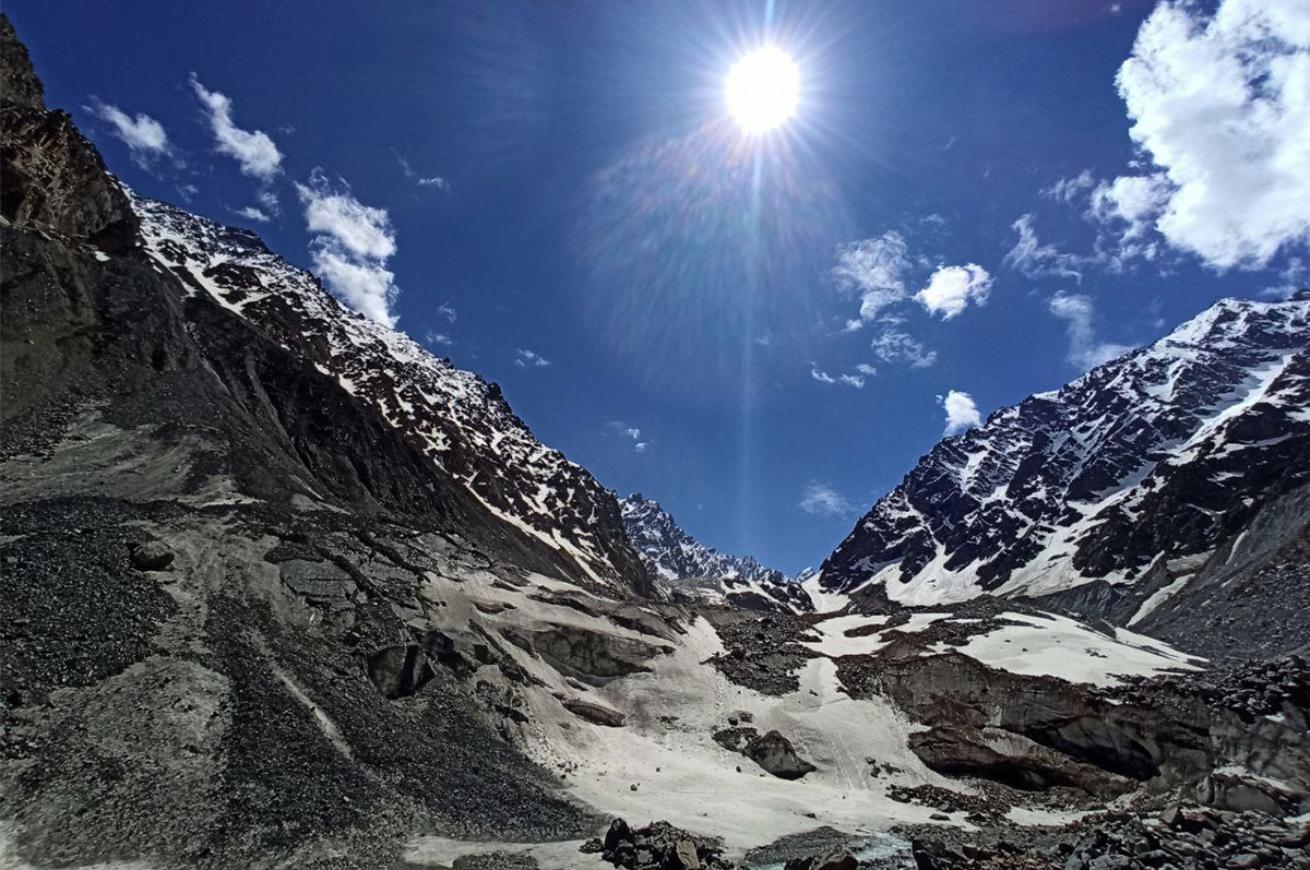Кроме ледника, отсюда полюбуемся на Пик туриста, который находится на противоположном горном хребте. В эти места отправимся через несколько дней.