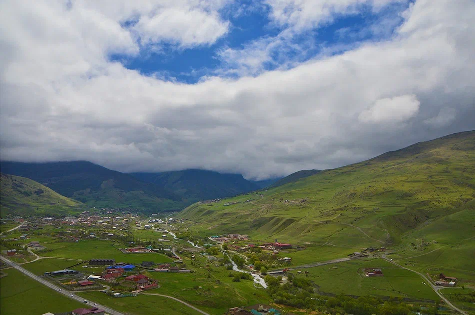 С высоты птичьего полета нам откроется все Цейское ущелье, вершины Главного Кавказского хребта Осетии и гордый красавец Казбек. Казбек (5033 м) – это одна из высших точек Грузии, вершину которого всегда украшают ледники и сверкающий снег.