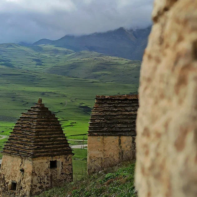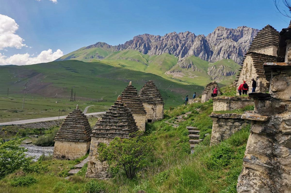Одно из самых необычных мест сегодняшней экскурсии – Даргавс, визитная карточка Осетии. Даргавс – это некрополь, который насчитывает около 90 склепов построенных в виде пирамид.