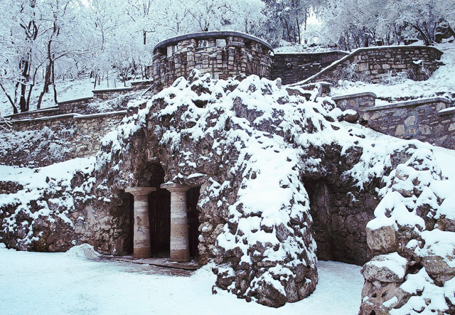 увидеть гигантские столбы льда, прозрачные колонны и сталактиты замерзшей воды, спускающиеся к самой реке. Как люстры с хрустальной переливающейся бахромой нависают ледяные свечи над Чегемом.
