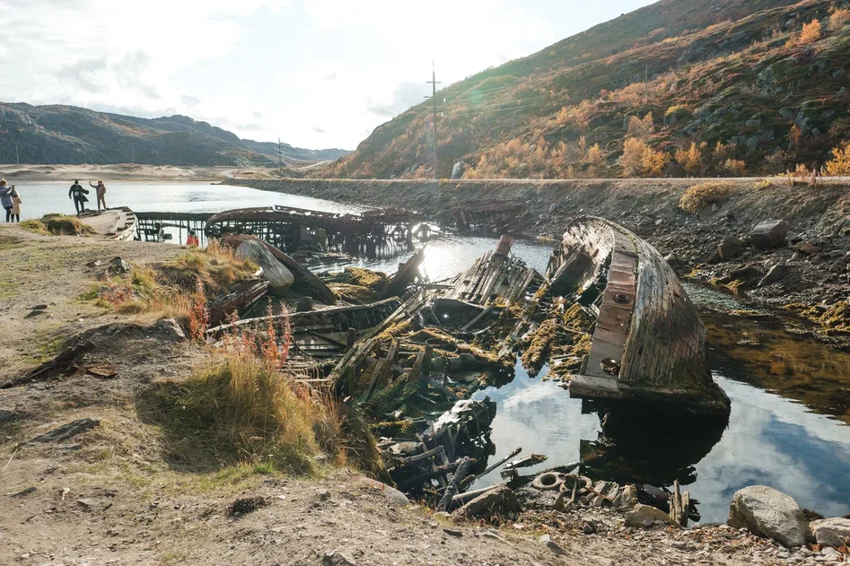 Прибытие в Териберку, и первая локация для посещения — вечная стоянка заброшенных рыбацких кораблей.