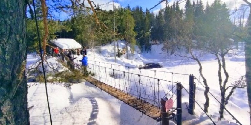 - Тайные тропы земли Калевала. На фоне карельского пейзажа с обзорной площадкой на озеро Светлое расположена интерактивная часть парка, которая перенесет вас на страницы карельского эпоса. Вы познакомитесь со светлыми и темными сказочными героями, попробуете поймать коня Хийси с помощью веревки и увидите еще много чего не менее интересного.