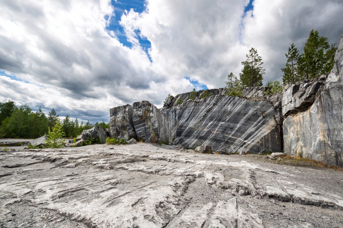 Раньше здесь добывали этот декоративный камень для отделки архитектурных шедевров Санкт-Петербурга. Облицовка Исаакиевского собора, полы Казанского собора, подоконники музея Эрмитаж, мемориал Брестской крепости, павильоны московской ВДНХ – везде был использован прекрасный рускеальский мрамор.