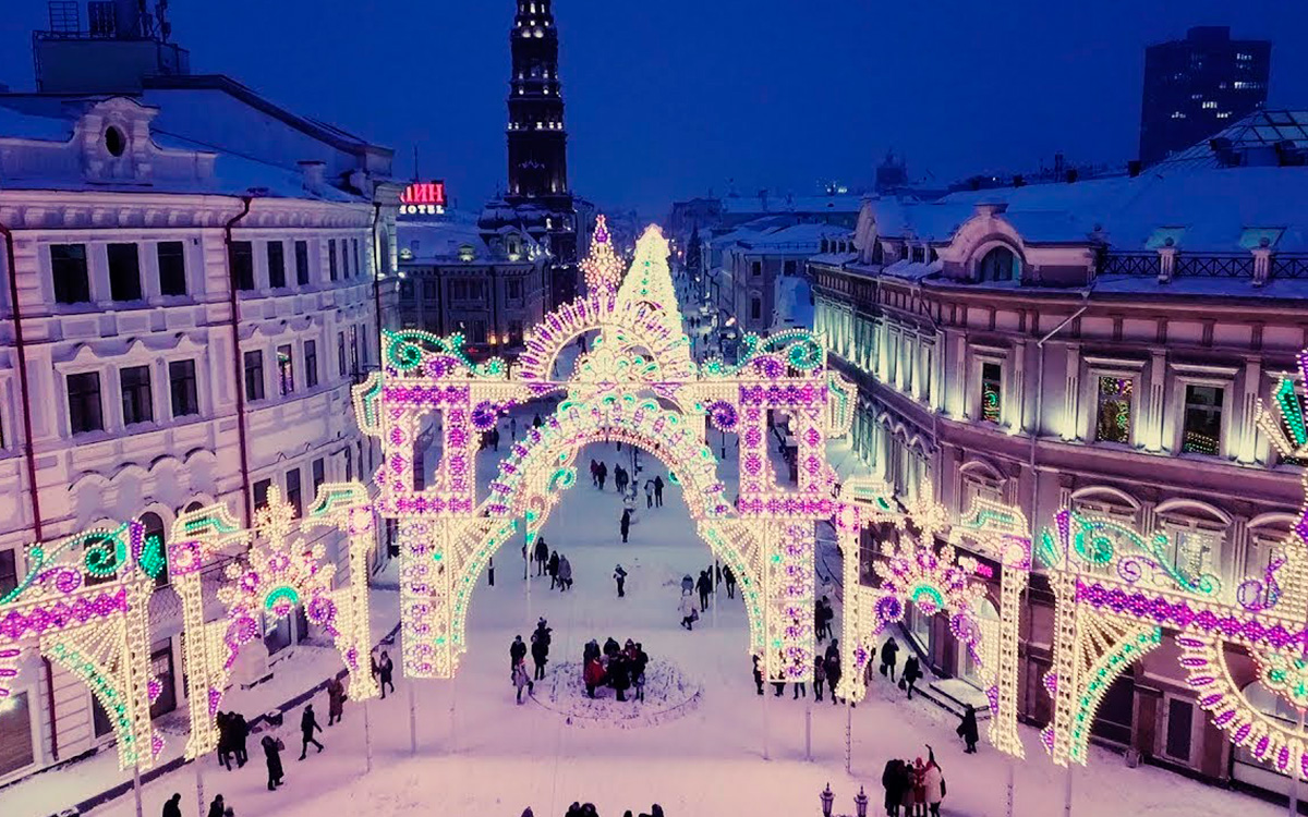 Столица укуталась в зимнее одеяние и готова предстать перед вами во всей своей праздничной красе. Старинные улицы и дома, припорошенные снегом, превратились в настоящую новогоднюю сказку. Вместе с вами мы совершим путешествие вглубь веков. Вас ждут уютные уголки старой Казани, где храмы соседствуют с мечетями, а особняки в европейском стиле спокойно уживаются рядом с усадьбами татарских купцов. Все вместе они составляют неповторимое целое, присущее только нашему городу.