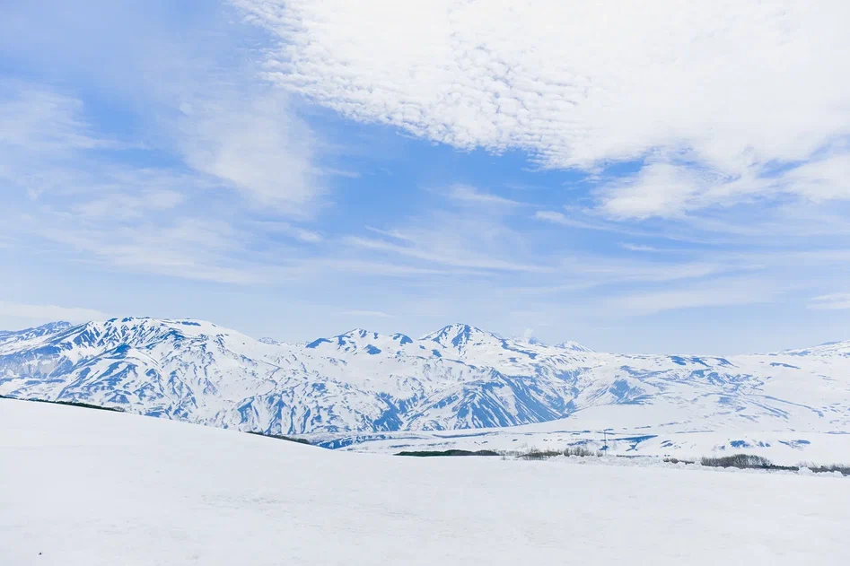 Мы отправимся на перевал, между двумя вулканами Корякским и Авачинским. Дорога сюда займёт около двух часов, по живописной зимней дороге среди заснеженных склонов вулканов, по руслу реки. Все время в пути вы будете сидеть на пассажирской нарте, которую везет за собой снегоход.