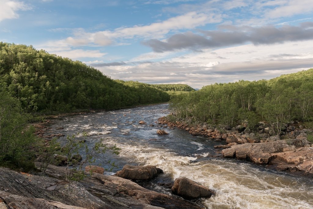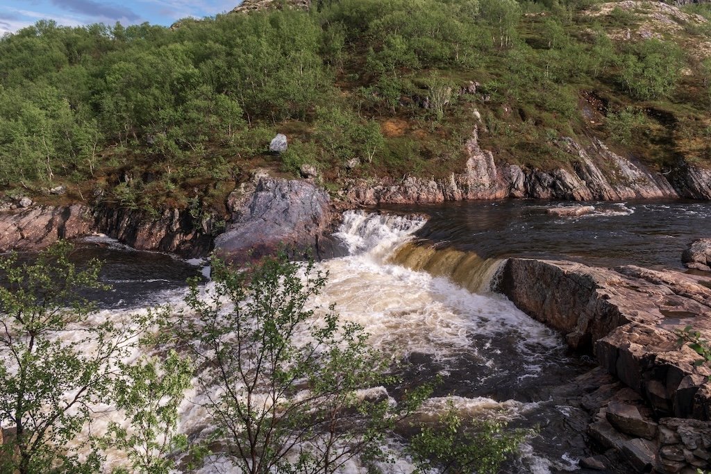 Первой жемчужиной маршрута станут водопады на реке Ура. Холодные потоки обрушиваются с высоты, окутывая окрестности облаками сверкающих брызг и наполняя воздух свежестью северных широт.