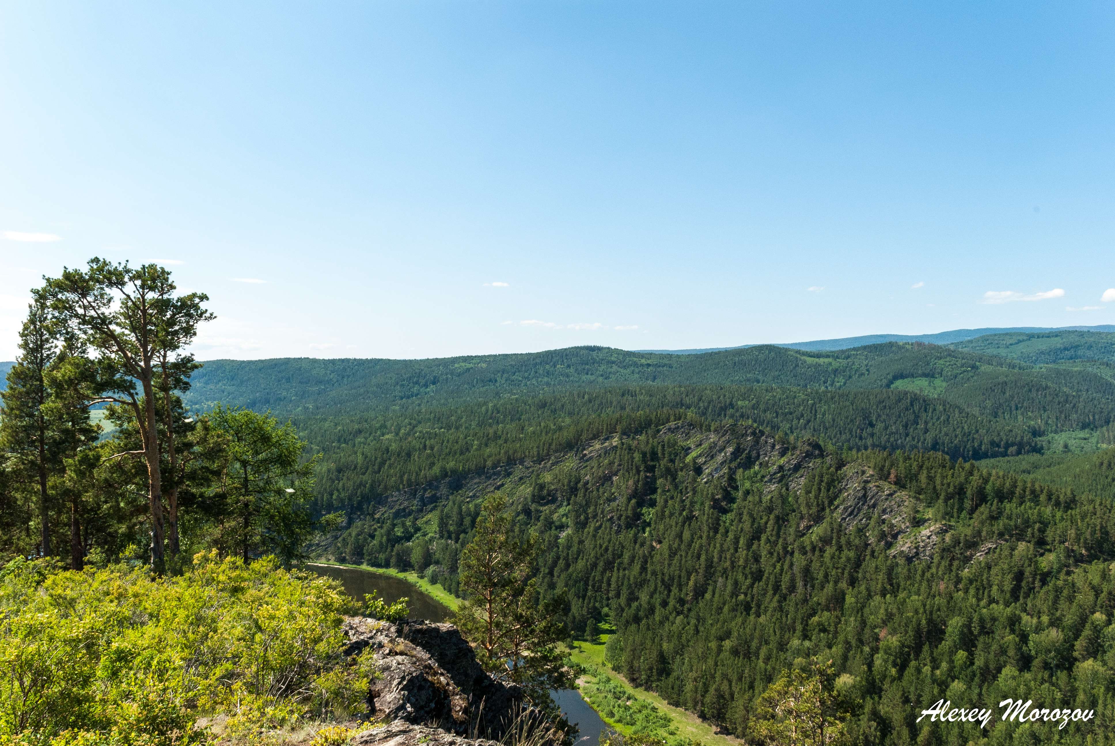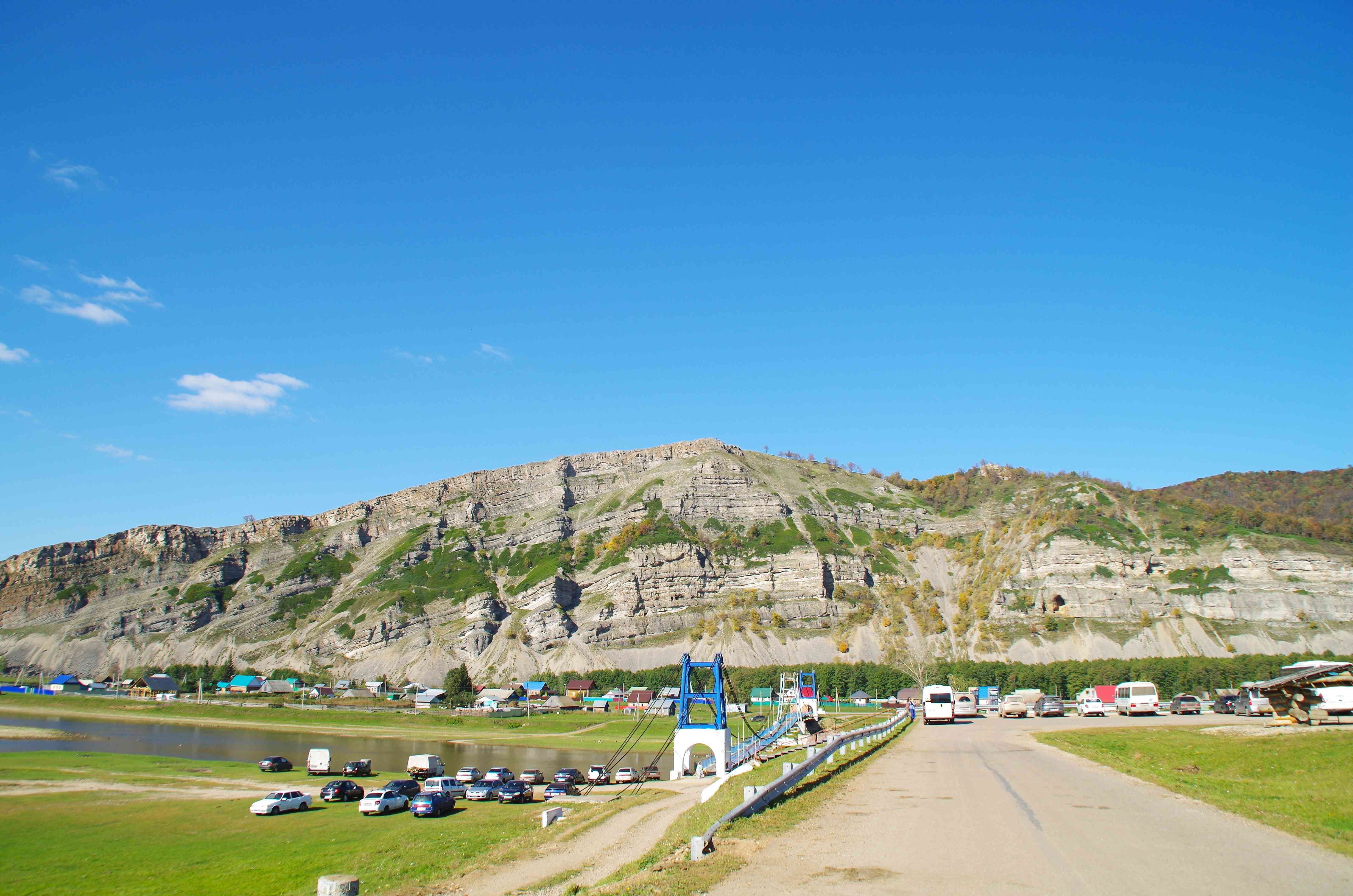 Резкий, почти стометровый обрыв в сторону изгиба реки Белая (Агидель), с которого открывается замечательный вид, прекрасный в любое время года - обзор хребта Баштау. Именно здесь делаются лучшие фотографии на фоне уральских гор.
