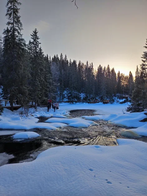 - Насладитесь чарующими видами Мраморного каньона, застывшего в морозной дымке, и зрелищем водопада Кивач, чьи потоки с шумом прорываются сквозь снега и льды.