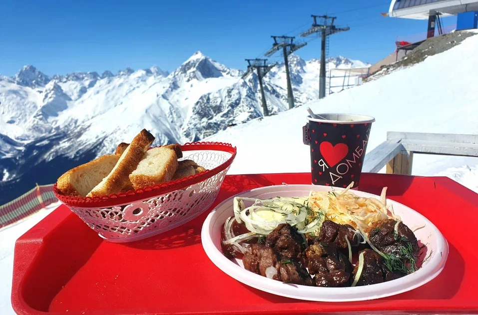Обед на поляне Чегет или поляне Азау