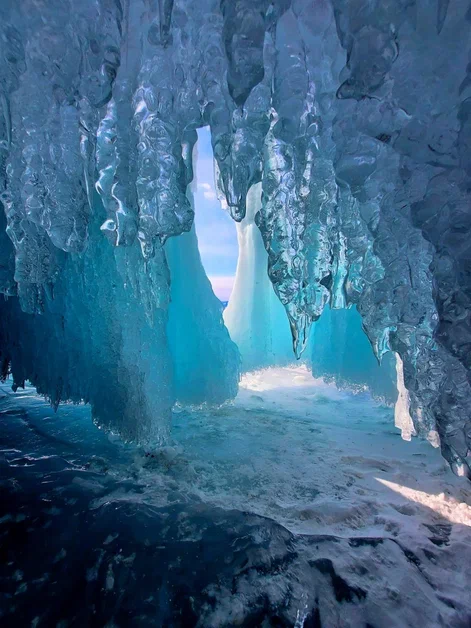 Завтрак. Отправляемся на Хивусе к ледяным пещерам и фантастическим гротам. Полюбоваться красотой бирюзовых и лазурных цветов льда можно только зимой!