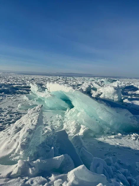 Путешествие на Хивусе по льду Байкала, с остановками в самых живописных местах озера.