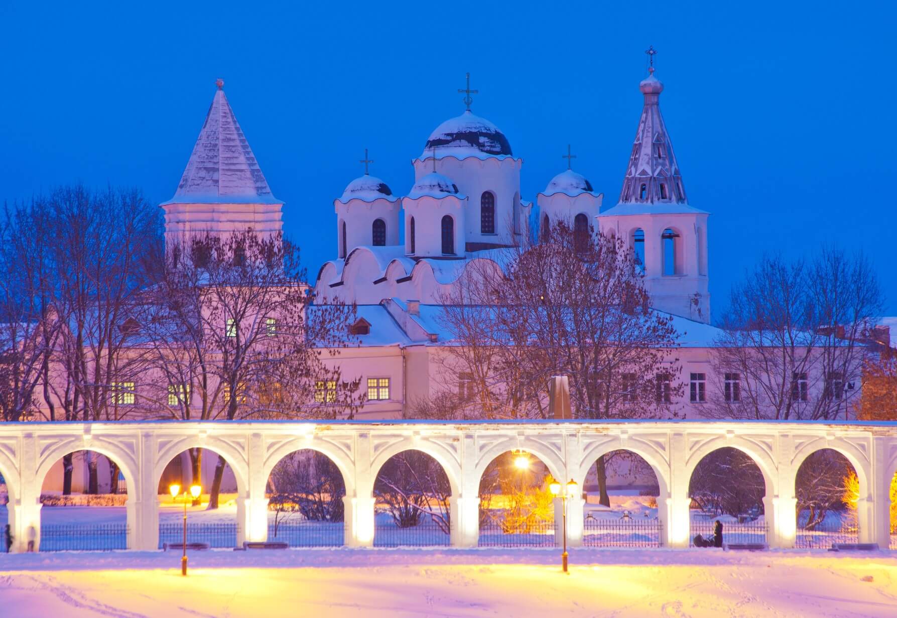 Знакомство с историей древнего города продолжится в живописных южных окрестностях, где от постороннего взгляда скрыта мужская обитель, одна из древнейших на территории России – Свято - Юрьев монастырь. Монастырь располагается у истока реки Волхов, вытекающего из легендарного озера Ильмень.