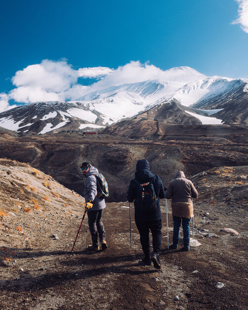Нас ждёт одна из визитных карточек Камчатки – вулкан Вилючинский. К нему мы отправимся на легендарном вездеходе Sever Truck и будем любоваться горным гигантом, который возвышается над окрестностями на 2173 м.
