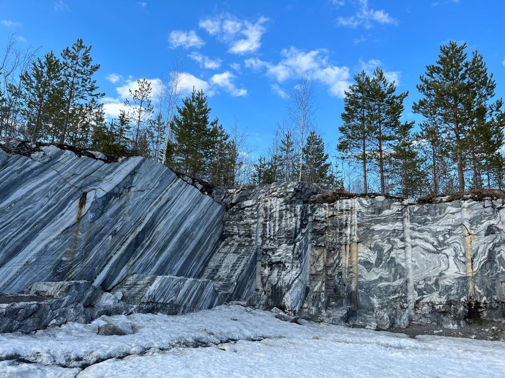 Жемчужиной этого парка является знаменитый Мраморный каньон, который привлекает своей красотой в любое время года. Добыча мрамора здесь велась в XVIII и XIX веках, именно отсюда доставляли мрамор для Мраморного и Мариинского дворцов, Исаакиевского собора. В зимнее время, когда наступают ранние сумерки в горном парке «Рускеала» можно полюбоваться фантастической подсветкой, напоминающей северное сияние и придающей парку особое очарование.