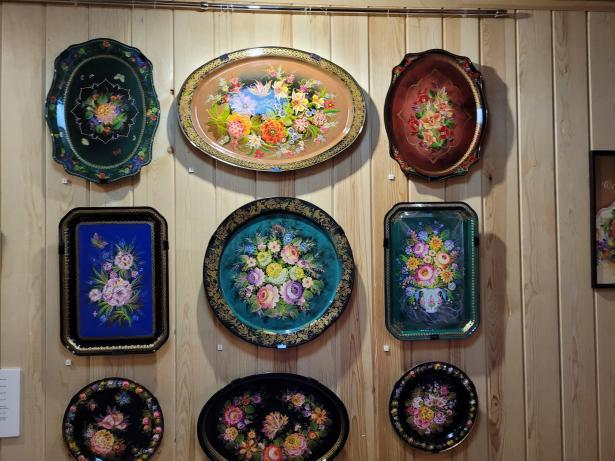 Мастер-класс по тагильской лаковой росписи с предоставлением всех материалов в Музейно-производственном комплексе «Тагильский поднос». Металлические подносы появились в начале XVIII века на металлургических заводах в городе Нижнем Тагиле, принадлежащих уральскому промышленнику А.Н. Демидову. Именно Демидовы являются зачинателями промышленного производства подносов.