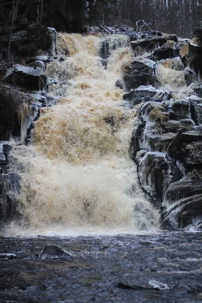 «Братья-падуны», как их называют местные жители, были бы единым целым, если бы не остров посреди реки, который делит течение надвое. В результате образовались два водопада – 18-метровый и 11-метровый. Они такие мощные, что даже суровой зимой не замерзают полностью, а дышат и сопротивляются морозу под ледяным панцирем, пробиваясь наружу.