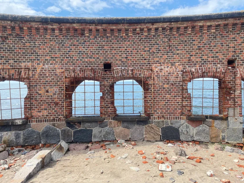 Паромная переправа (примерно 1 км), знакомство с Балтийской косой, узкой полоской земли, которая омывается пресным заливом и Балтийским морем. Осмотр развалин комплекса крепости «Пиллау» форта «Западный» 1869 года в форме неправильного пятиугольника, защищенный с тыла рвом с водой и подъемным мостом, Северный мол, сохранившиеся немецкие ангары для гидросамолетов уникального аэродрома «Нойтиф» – одна из крупнейших авиабаз Люфтваффе. Музей Вислинской косы «Старый Люнет» (оплачивается дополнительно, по желанию, 200,00 руб. с чел.), свободное время. Окончание в 17:00.