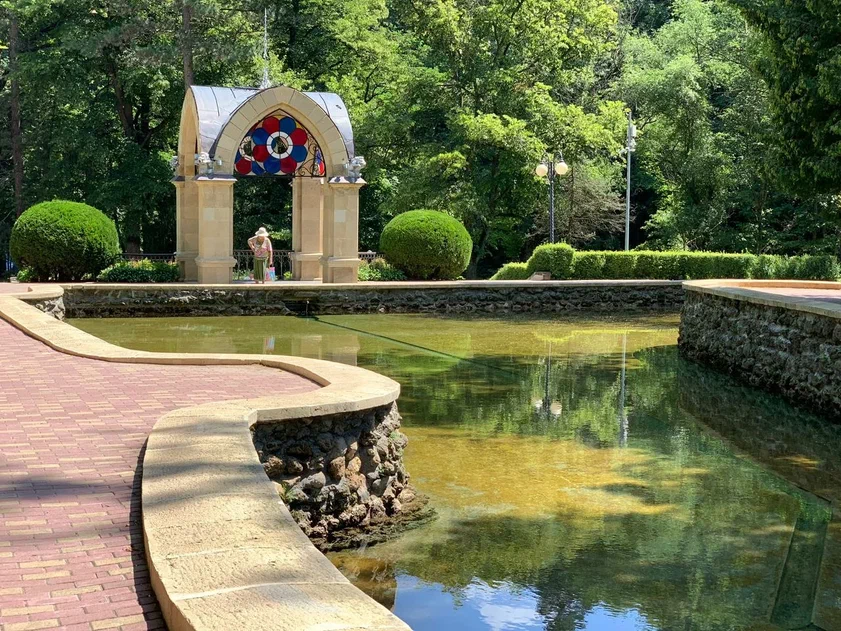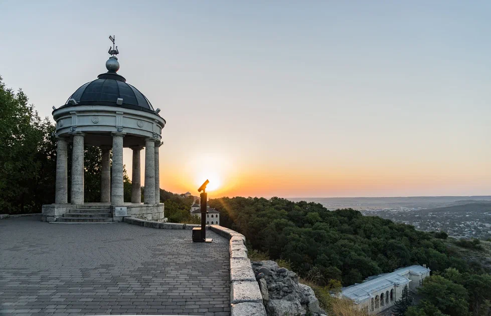 Далее маршрут следует в Пятигорск, город, навсегда связанный с именем М.Ю. Лермонтова. Программа начинается с посещения скорбного места дуэли поэта на склоне горы Машук. Затем атмосфера меняется: мы спускаемся к таинственному синему озеру Провал, знаменитому по роману «Двенадцать стульев». Следующая остановка — Эолова Арфа на краю обрыва, где ветер создаёт свою вечную мелодию. Кульминацией знакомства с Пятигорском становится прогулка по старейшему парку «Цветник». Здесь мы увидим историческую питьевую галерею, изящную Лермонтовскую галерею, заглянем в аутентичную кофейню Гукасова и посетим романтический грот Дианы. Завершит этот насыщенный день осмотр здания Института Курортологии — символа научного подхода к лечению на Кавказских Минеральных Водах.