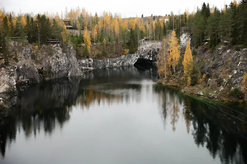 Центр парка – легендарный Мраморный каньон. Это не просто живописное озеро, а настоящая каменная летопись. Здесь добывали мрамор для Исаакиевского собора и станций петербургского метро, и вы сможете прикоснуться к тем самым пластам, что украшают архитектурные шедевры Северной столицы.